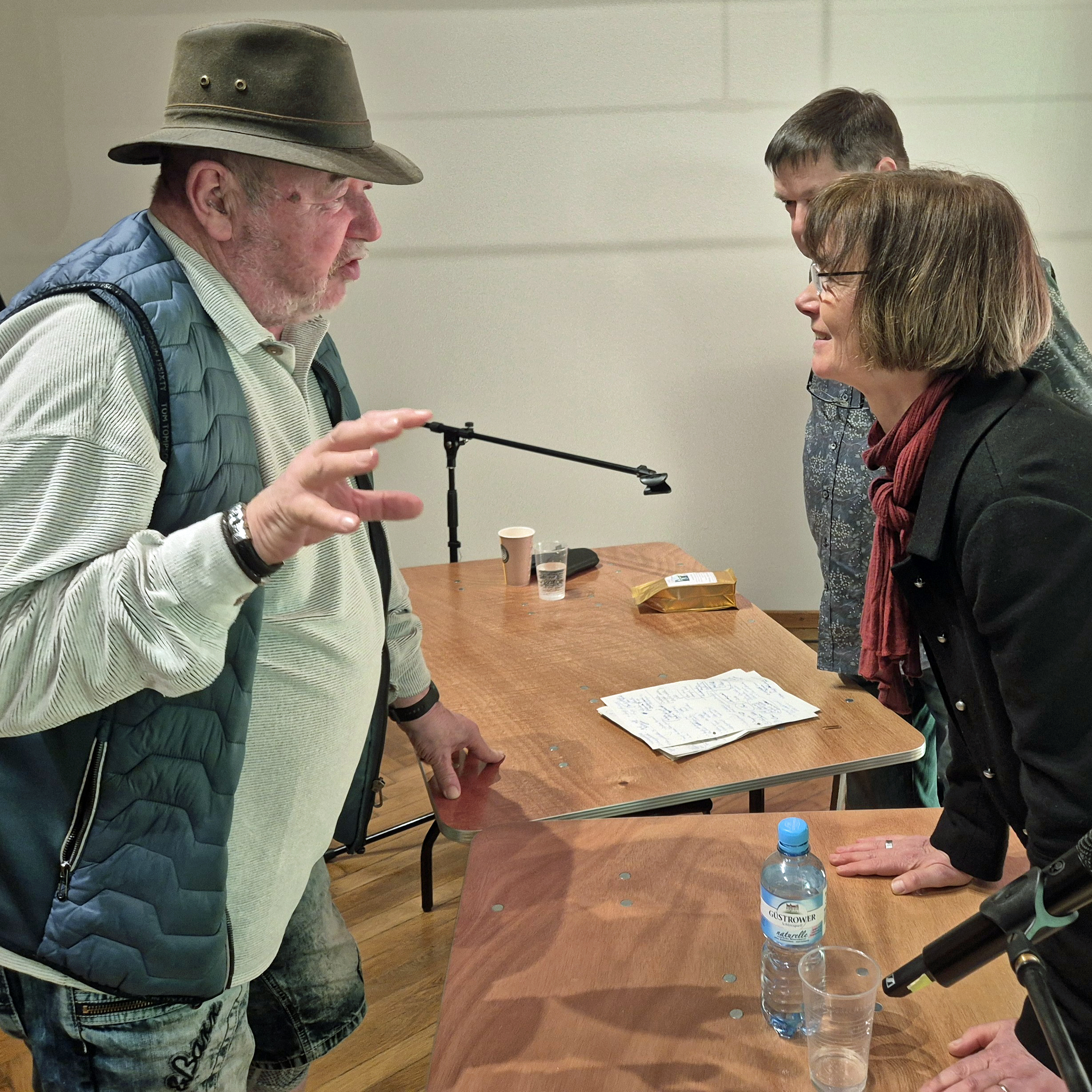 Dann komme ich mit meinem „Faust-Schlag“. Und schließlich, nach der Pause, mit „Oma“. Es ist meine Lieblingsgeschichte, sie handelt von einem Abschied nach der Trauerfeier. Eigentlich unfassbar. Da ist man sich einig. Große Stille im Bestattungshaus.