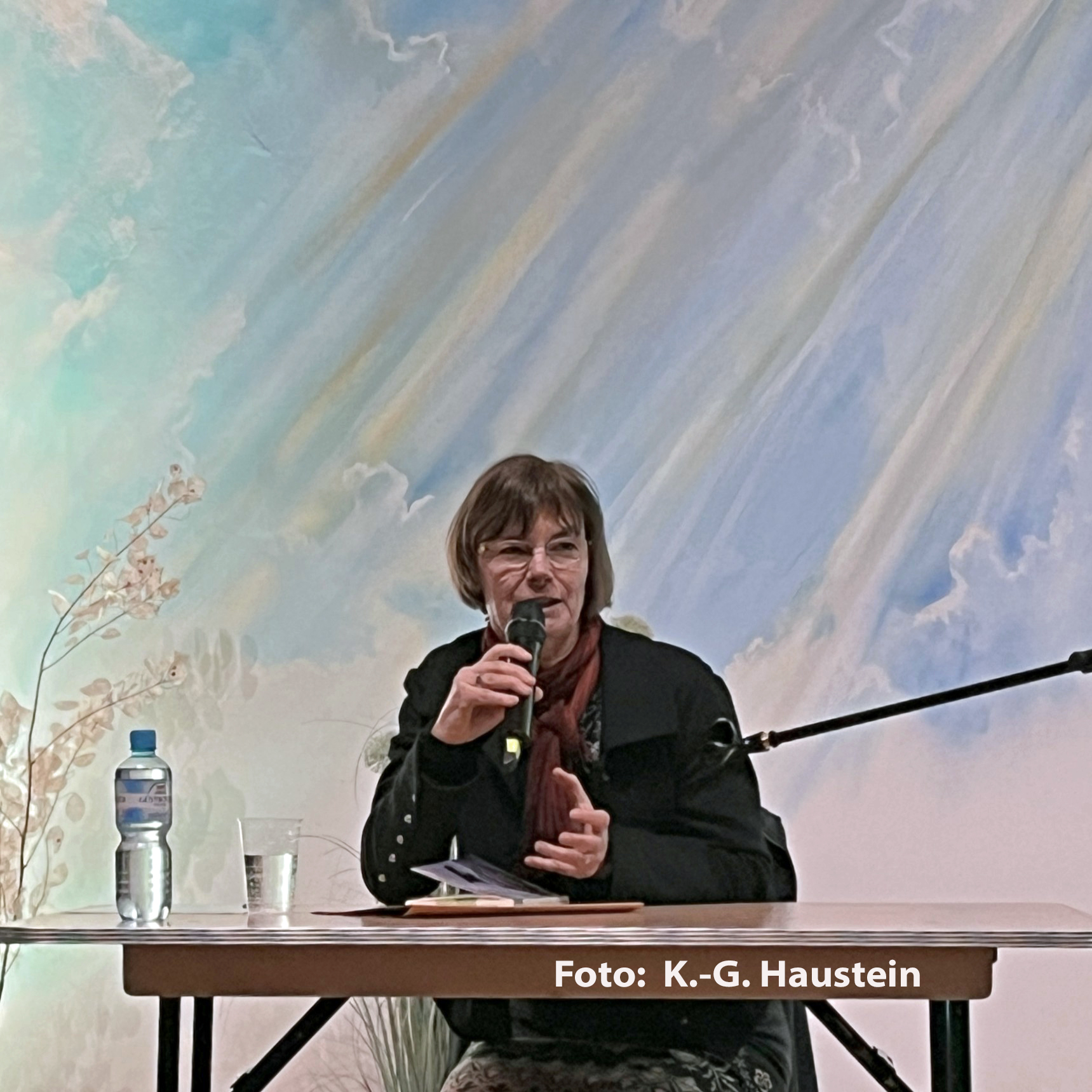Vor dem Wandbild, das in Pastellfarben behutsam den Weg in die Ewigkeit zeigt, steht mein Lesetisch. Es gibt so viele Stuhlreihen wie ein großes Dorf auch für eine Beerdigung braucht. Man kennt sich. Gut sogar.